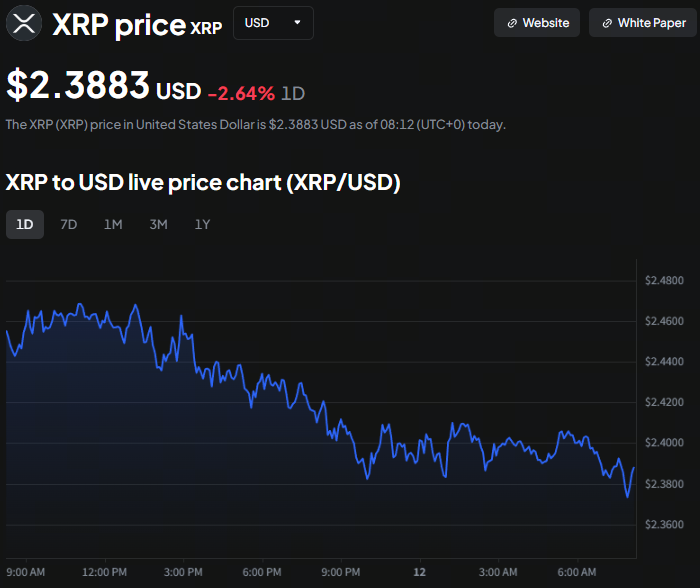 Nonetheless, the XRP value hasn’t lived as much as the hype. After the October sell-off, the price of XRP slipped and has been hovering across the $2.27 assist zone, struggling to show it right into a stable base.