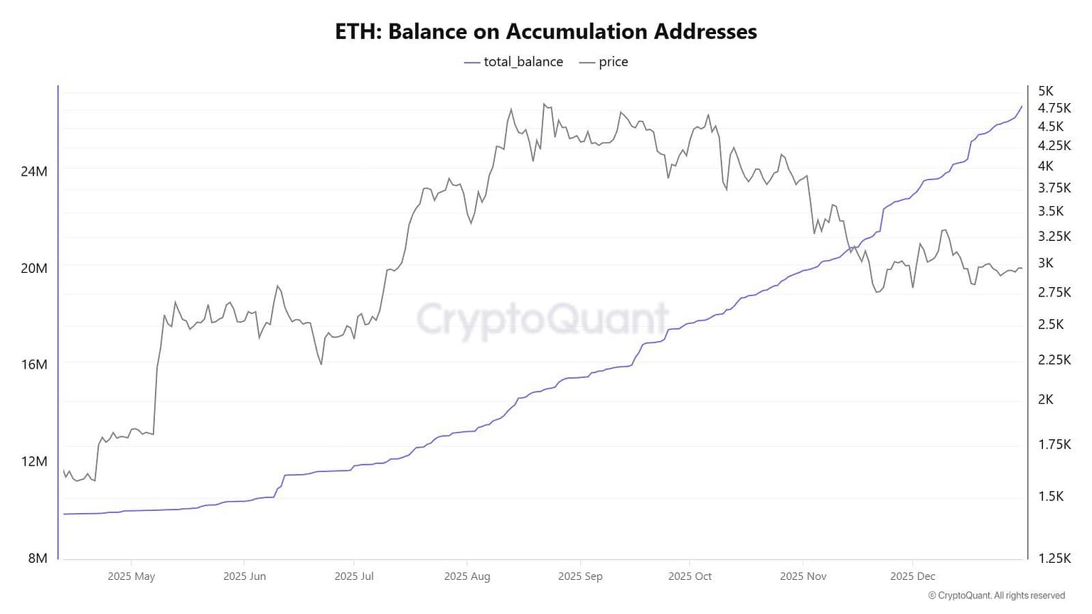 CW, a crypto analyst and information analyst, has reported an uptick in shopping for exercise as noticed within the rise within the ETH Stability on Accumulation Addresses metric, which is traditionally linked to long-term holding conduct. Buyers’ exercise transferring in opposition to worth motion is a sign of rising conviction amongst affected person gamers. Moreover, this divergence factors to a maturing stage of strategic accumulation even because the broader sentiments sign persistent warning.