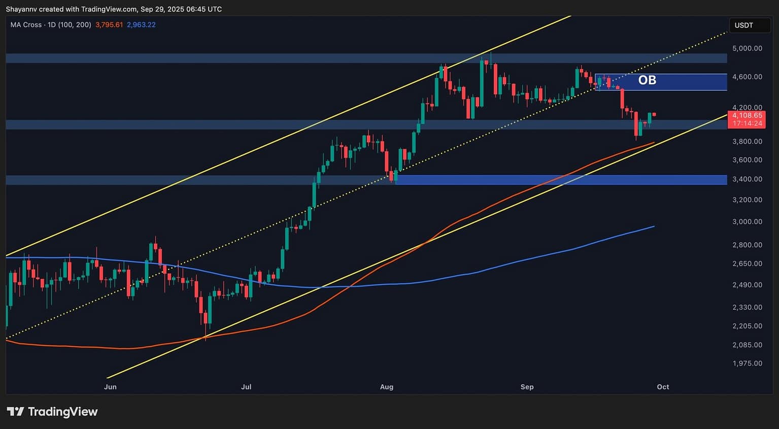 The rejection from the order block close to $4,600–$4,700 has left the market weak to short-term draw back strain. Nonetheless, so long as the worth holds above $3.8K–$3.9K, there stays scope for restoration. A sustained each day shut again above the order block would probably set off renewed bullish momentum.