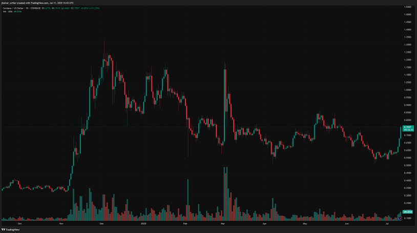 ADA's value developments to the upside on the day by day chart. Supply: ADAUSD on Tradingview