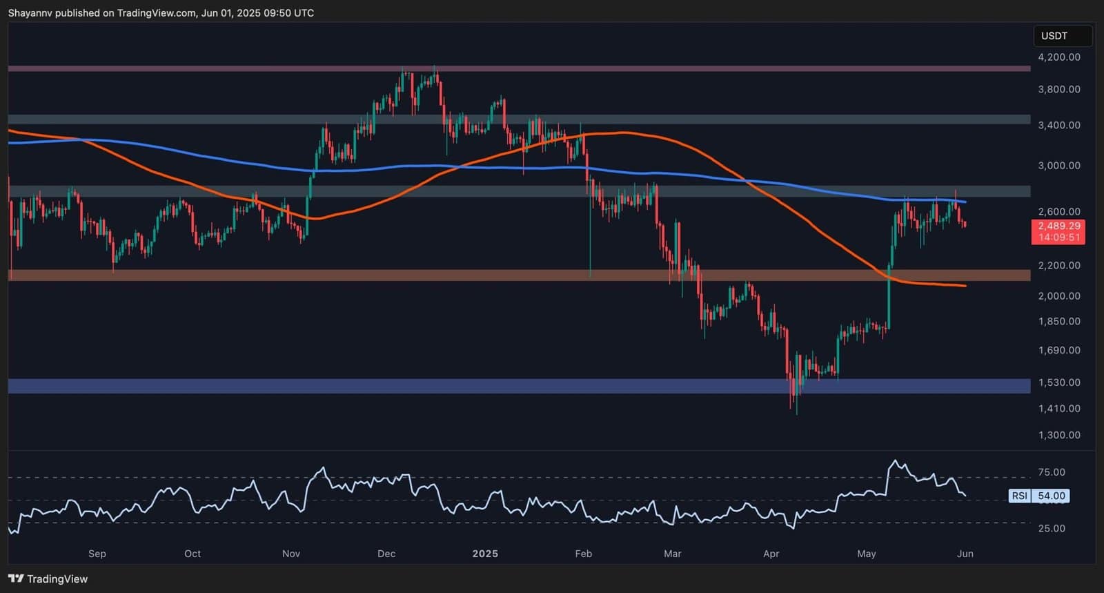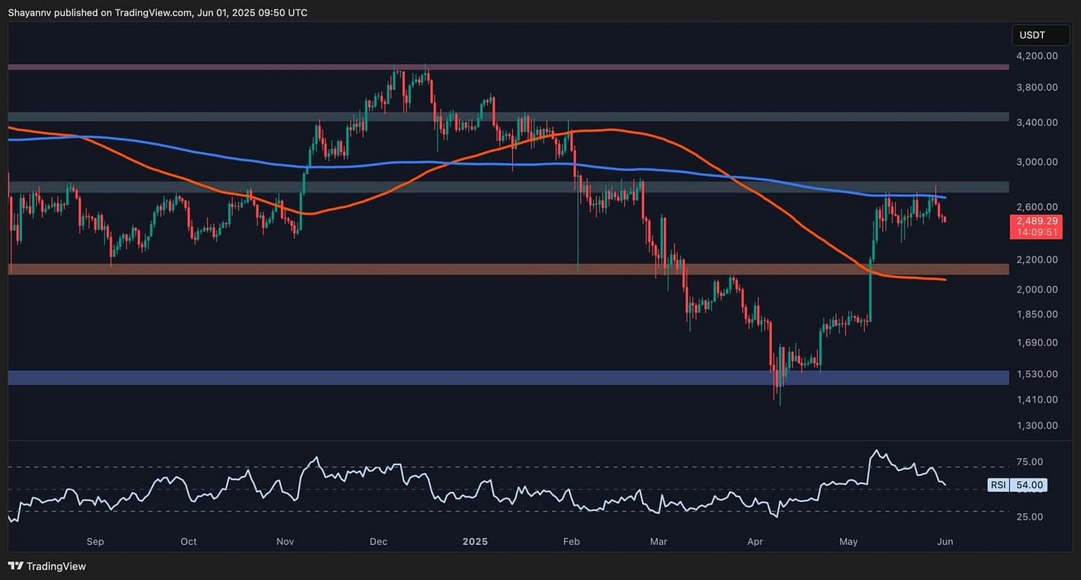 The shortage of sustained shopping for momentum suggests {that a} extended consolidation part, probably extending down towards the $2.2K help zone, is more and more possible within the mid-term.