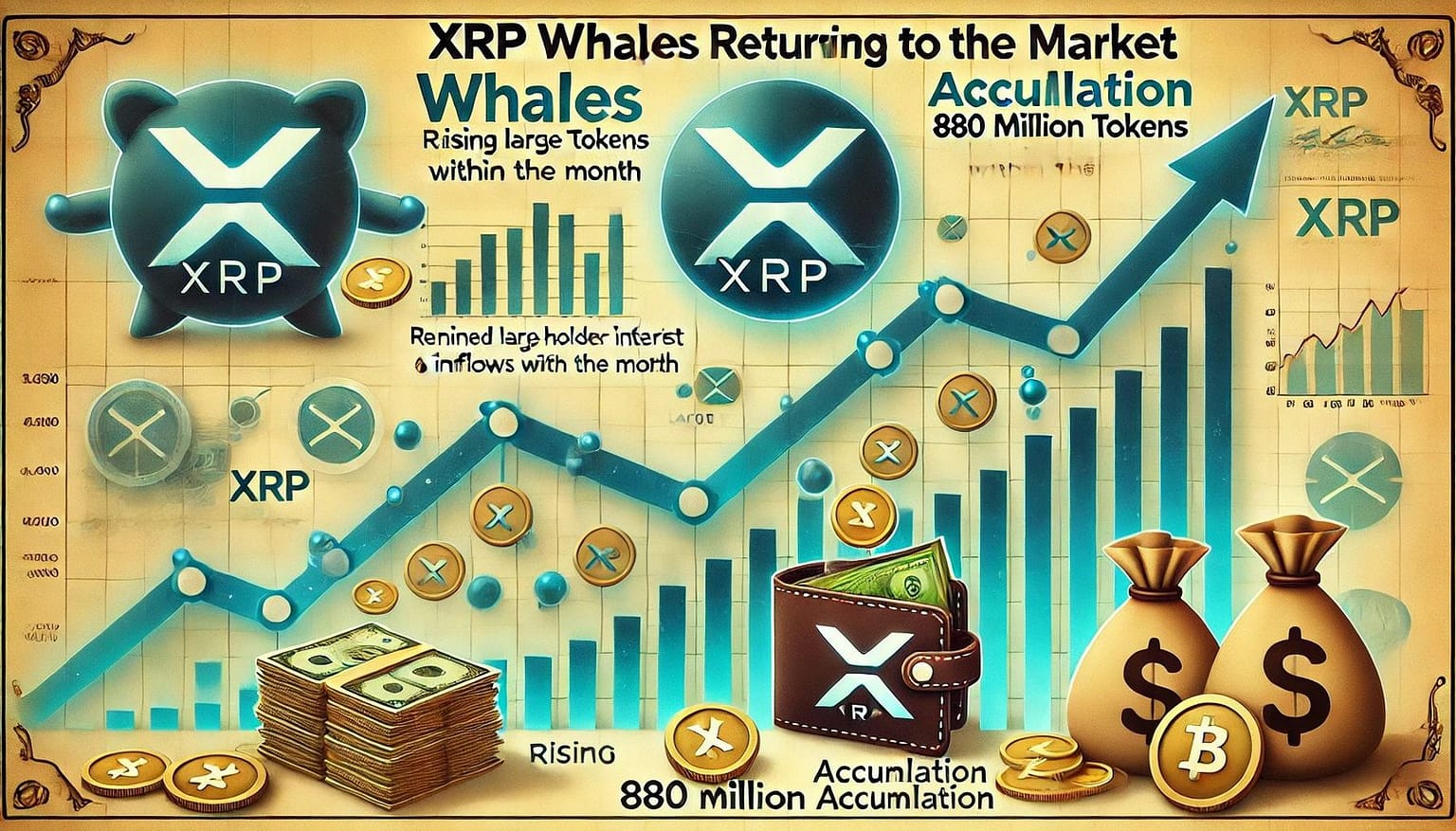 Analysts are turning their focus to XRP because it makes an attempt to maintain this breakout, with some calling for a rally that might lastly shut the hole towards earlier cycle highs. Supporting the bullish case is new on-chain information from Santiment, revealing that XRP whales have returned aggressively, accumulating over 880 million tokens previously month alone. This surge in accumulation by giant holders suggests rising confidence in XRP’s trajectory and is usually a sign that good cash is positioning early forward of a significant transfer.